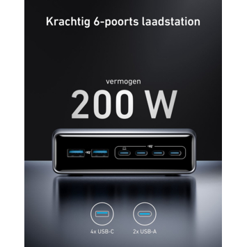 Laadstation met 200W vermogen en zes poorten