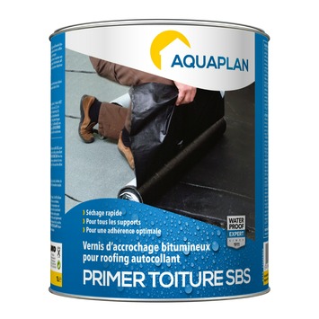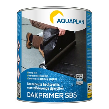 Voor een optimale hechting van je zelfklevende dakrollen op verschillende ondergronden gebruik je Aquaplan dakprimer SBS 1 liter. Deze sneldrogende en bitumineuze impregneerlaag is gemaakt op basis van SBS-rubbers. SBS staat voor styrene-butadien-styrene en zorgt voor de stevigheid en goede hechting van de primer. De primer is makkelijk te verwerken op verschillende ondergronden, zoals oude bitumineuze dakbedekking, hout, beton en metaal en zelfklevende dakrollen. De primer fixeert achtergebleven stof en losse stukjes, waarmee Aquaplan optimale hechting garandeert. Kortom: een uitstekende hechting van zelfklevende dakrollen op je daken creëer je met Aquaplan SBS dakprimer.