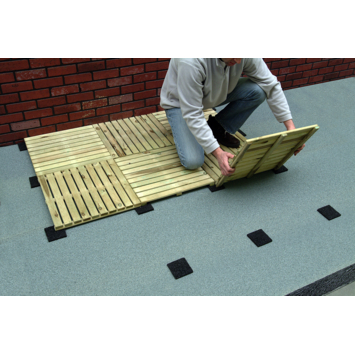 Deze Aquaplan tegeldrager is ideaal voor de bescherming van zinken en bitumineuze daken. Het zijn schokdempende tegeldragers die ook nog eens rotvrij en slijtvast zijn. De niet-verstelbare tegeldragers hebben een geluidsdempende werking en worden per 10 stuks verpakt. Van plan om je dak te bestraten? Maak dan gebruik van deze Aquaplan Tegeldrager Rubber Zwart 10x10 cm - 10 stuks.
