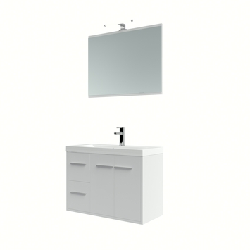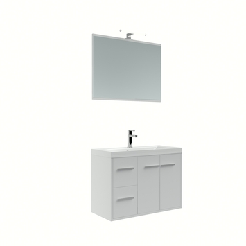 Badkamermeubelset Arte bestaat uit een onderkast, wastafel van gietmarmer en een spiegelkast. Deze is exclusief kraan en verlichting. Arte is een ondiep badkamermeubel, ideaal om de ruimte in een kleine badkamer optimaal te benutten! Deze elegant en slank vormgegeven lijn heeft een witte wasbak met een dun wastafelblad. De meubels zijn leverbaar in hoogglans wit, mat zwart of een verrassende en stijlvolle combinatie hiervan. Een artistieke ruimteoplosser geschikt voor iedere portemonnee.