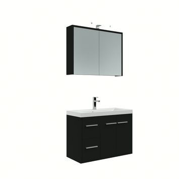 Arte badmeubelset met spiegelkast zwart 80 cm
