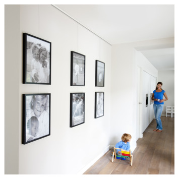 Prachtig systeem. Geen haken en nagels meer in de muur om kaders oop te hangen