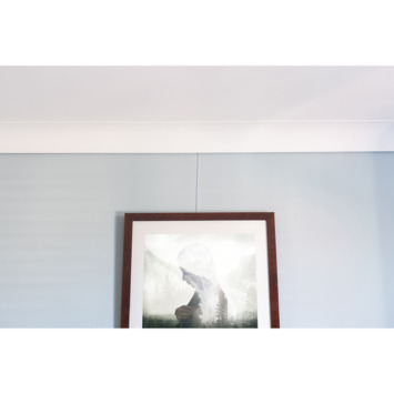 Wanneer je je schilderij ophangsysteem buiten het zicht wilt ophangen, kan je gebruik maken van de Artiteq Deco Rail. Dit is een schilderij ophangsysteem dat in combinatie met kroonlijsten wordt gemonteerd. De Deco Rail is een platte rail die op de muur tegen het plafond aan wordt geplaatst. Vervolgens wordt de gewenste kroonlijst op de Rail bevestigd, waardoor deze niet meer zichtbaar is. Tip: monteer de rail over de gehele lengte van de wand zodat de rail het minst opvalt en de hele muur flexibel gebruikt kan worden.