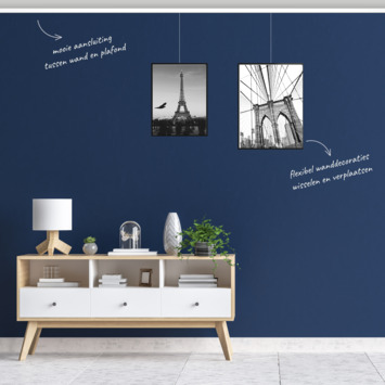 Fijne manier om decoratie op te hangen zonder gaten in mijn muur te boren. Maar wel even goed kijken met het ophangen van de rail.