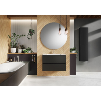 In het dagelijks gebruik merk je meteen het gemak. De brede wastafel biedt voldoende ruimte voor je ochtend- en avondroutine. De twee lades openen soepel en sluiten zacht dankzij het softclose mechanisme, waardoor het meubel comfortabel in gebruik is.