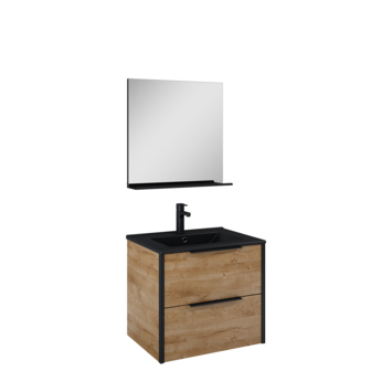 Atlantic Badkamermeubelset Aria met Spiegel en Zwarte Wastafel - Canela Eiken 60 cm