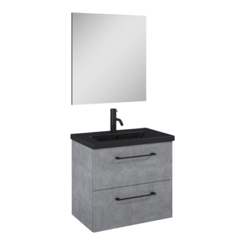 Atlantic Badkamermeubelset Sienna met Spiegel en Zwarte Wastafel - Beton 60 cm