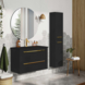 De Atlantic badmeubelset Stella met spiegel en zwarte wastafel 80cm Mat Zwart is een hangende set met een chique uitstraling. Dankzij het hangende design creëer je een ruimtelijke look in jouw badkamer. Het meubel is voorzien van 2 soft close laden en een mat zwarte keramische wastafel. Daarnaast is aan deze set een losse ronde spiegel toegevoegd. De set is voorzien van stijlvolle messing grepen, wat zorgt voor een chique en industrieel uiterlijk. De set wordt flatpacked geleverd en is eenvoudig te installeren met de meegeleverde bevestigingsmaterialen. Exclusief wastafelkraan.
