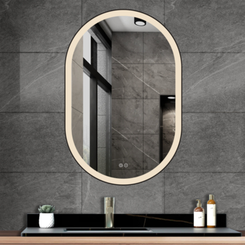 Met een afmeting van 90 cm hoog en 60 cm breed biedt deze ovale spiegel niet alleen een stijlvol accent voor elke moderne badkamer, maar ook functionele voordelen die dagelijks comfort verhogen. De zwarte aluminium rand voegt een vleugje tijdloos design toe en staat garant voor duurzaamheid en roestbestendigheid, zelfs in vochtige ruimtes.