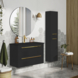 De Atlantic badmeubelset Stella met spiegel en zwarte wastafel 60cm Mat Zwart is een hangende set met een chique uitstraling. Dankzij het hangende design creëer je een ruimtelijke look in jouw badkamer. Het meubel is voorzien van 2 soft close laden en een mat zwarte keramische wastafel. Daarnaast is aan deze set een losse ronde spiegel toegevoegd. De set is voorzien van stijlvolle messing grepen, wat zorgt voor een chique en industrieel uiterlijk. De set wordt flatpacked geleverd en is eenvoudig te installeren met de meegeleverde bevestigingsmaterialen. Exclusief wastafelkraan.