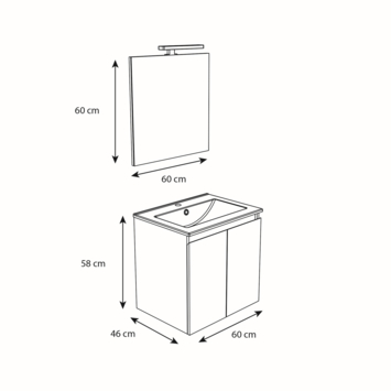 De Atlantic by Allibert badmeubelset Emma 60 cm 2 deurs hout bestaat uit een hangende onderkast met wastafel, spiegel én verlichting. Dit meubel is vervaardigt uit gelamineerd MDF en bestaat in het wit en hout. Je kan ook kiezen tussen een onderkast met laden of deurtjes! Er zijn twee afmetingen verkrijgbaar, nl. 60 cm en 80 cm. Vergeet ook niet te kijken naar de brede bijpassende kolomkast voor dit meubel.