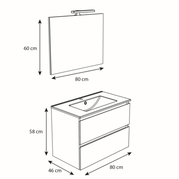 De Atlantic by Allibert badmeubelset Emma 80 cm 2 lades hout bestaat uit een hangende onderkast met wastafel, spiegel én verlichting. Dit meubel is vervaardigt uit gelamineerd MDF en bestaat in het wit en hout. Je kan ook kiezen tussen een onderkast met laden of deurtjes! Er zijn twee afmetingen verkrijgbaar, nl. 60 cm en 80 cm. Vergeet ook niet te kijken naar de brede bijpassende kolomkast voor dit meubel.