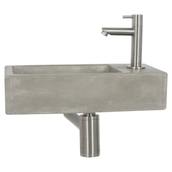 De Ethan fonteinset van Atlantic is gemaakt van beton en is ideaal voor de kleine badkamer of toiletruimte. Door deze wasbak in een hoek te plaatsen kun je ruimte besparen, maar hij staat ook prima op een vlakke wand. De fonteinset komt met kraan, designsifon en afvoerplug. De benodigde pluggen en schroeven moet je nog even bij bestellen. De kraan, sifon en afvoerplug hebben een moderne mat afgewerkte buitenlaag. De Atlantic Ethan fonteinset beton is eenvoudig te monteren en komt met 3 jaar garantie.