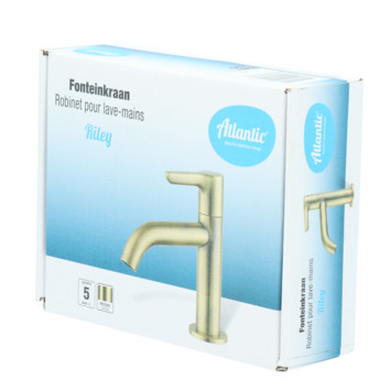 De Atlantic fonteinkraan Riley met hendel Messing bestaat uit een goudkleurige messing fonteinkraan van 12,2 cm hoog, bevestigingsmateriaal en montagehandleiding. De Riley fonteinkraan heeft een handige eenhendelbediening, waarmee je eenvoudig de kraan aan zet. De kraan heeft een diepte van slechts 10,2 cm en is daarmee uitermate geschikt voor gebruik in het toilet. De mat geborstelde afwerking geeft de tijdloos vormgegeven kraan een wat stoerdere uitstraling. Gebruik alleen water en een zachte doek om de kraan schoon te maken. Gebruik geen schurend, bijtend, azijnhoudend of agressief schoonmaakmiddel. Besluit je deze kraan te kopen? Dan heb je 5 jaar garantie.