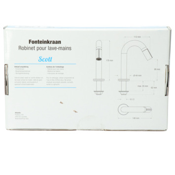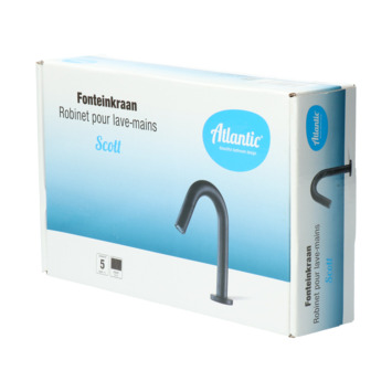 De Atlantic fonteinkraan Scott met draaiknop Zwart bestaat uit een mat zwarte messing fonteinkraan van 17,8 cm hoog, bevestigingsmateriaal en montagehandleiding. De kraan heeft een diepte van slechts 11,2 cm en is daarmee uitermate geschikt voor gebruik in het toilet. De Scott fonteinkraan zet je open met de draaiknop op het uiteinde van de kraanuitloop. Aan de anti-kalk perlator hecht kalk zich moeilijk vast en veeg je er gemakkelijk met de hand af. De ronde c-vormige kraan heeft een mat zwarte stoere afwerking. Gebruik alleen water en een zachte doek om de kraan schoon te maken. Gebruik geen schurend, bijtend, azijnhoudend of agressief schoonmaakmiddel. Op de kraan heb je 5 jaar garantie.