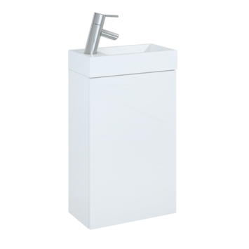 Het handenwassermeubel Edin is een compact en modern meubel uit duurzaam hout met een wasbakje uit wit polybeton. Het rechthoekige meubel is 68 cm hoog, 40 cm breed, 22 cm diep en beschikt over een greeploze kast met een innovatief push-to-open-systeem. Ideaal tegen de muur van je toilet. Inclusief bevestigingsmateriaal; exclusief spiegel, kraan en sifon. Tip: combineer met een zilverkleurige kraan met dezelfde moderne look & feel. Ook beschikbaar in houtkleur.