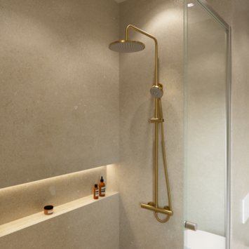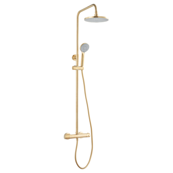 Atlantic regendoucheset Asher met handdouche 3 standen en thermostaatkraan goud - hartafstand kraan 15 cm