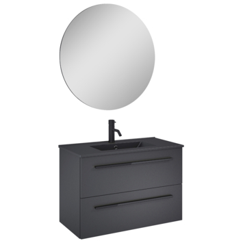 Atlantic Stella badmeubelset met spiegel en zwarte wastafel 80cm Mat Zwart met zwarte grepen349.50