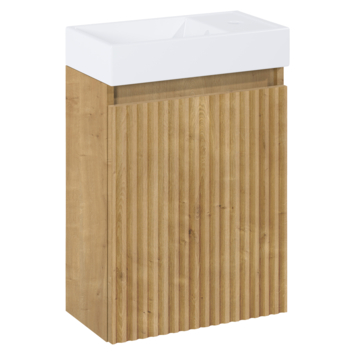 Moderne Afwerking: De geribbelde houten afwerking geeft een eigentijdse look, terwijl de softclose-functie zorgt voor comfortabel en stil sluiten van de deur.