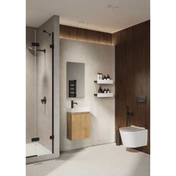 Keuze Uit Twee Waskommen: De mogelijkheid om te kiezen tussen een glanzend witte of een matzwarte wastafel biedt extra ontwerpmogelijkheden voor jouw badkamerstijl.