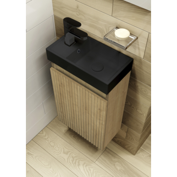 Dit fonteinmeubel combineert functionaliteit met design, ideaal voor moderne badkamers. Overweeg het Amari model voor een eenvoudige maar toch luxe update!