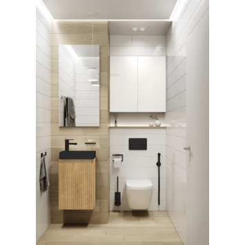 Keuze Uit Twee Waskommen: De mogelijkheid om te kiezen tussen een glanzend witte of een matzwarte wastafel biedt extra ontwerpmogelijkheden voor jouw badkamerstijl.