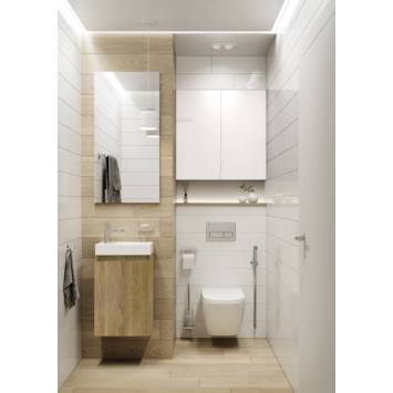 Dit fonteinmeubel Imani eiken met witte wastafel is een model uit de veelzijdige Atlantic Imani meubelserie: dé oplossing voor kleine badkamers en gastentoiletten. Deze stijlvolle, voorgemonteerde meubelcombinatie biedt maximaal comfort en gemak in elke ruimte. Met de geavanceerde softclose deuropening geniet je van een geruisloze ervaring en dankzij de flexibele deurconstructie kun je kiezen voor zowel links- als rechtsdraaiende deuren. Kies uit meerdere elegante afwerkingen: Een klassiek wit meubel of de warme uitstraling van natuur of donker eiken met een witte of zwarte keramische wastafel. De wastafel is links of rechts monteerbaar, zodat deze perfect in jouw ruimte past. Met het eenvoudig te monteren ophangsysteem is de installatie een fluitje van een cent! Ervaar de luxe en functionaliteit van de Atlantic Imani serie en transformeer je badkamer met een meubel dat stijl en praktisch gemak moeiteloos combineert.