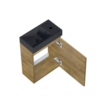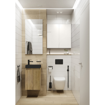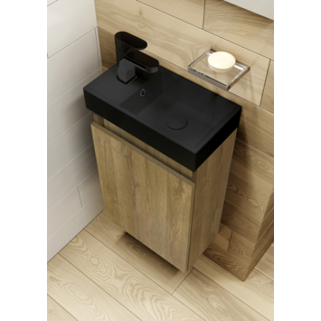 Dit fonteinmeubel Imani eiken met zwarte wastafel is een model uit de veelzijdige Atlantic Imani meubelserie: dé oplossing voor kleine badkamers en gastentoiletten. Deze stijlvolle, voorgemonteerde meubelcombinatie biedt maximaal comfort en gemak in elke ruimte. Met de geavanceerde softclose deuropening geniet je van een geruisloze ervaring en dankzij de flexibele deurconstructie kun je kiezen voor zowel links- als rechtsdraaiende deuren. Kies uit meerdere elegante afwerkingen: Een klassiek wit meubel of de warme uitstraling van natuur of donker eiken met een witte of zwarte keramische wastafel. De wastafel is links of rechts monteerbaar, zodat deze perfect in jouw ruimte past. Met het eenvoudig te monteren ophangsysteem is de installatie een fluitje van een cent! Ervaar de luxe en functionaliteit van de Atlantic Imani serie en transformeer je badkamer met een meubel dat stijl en praktisch gemak moeiteloos combineert.