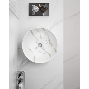 Ontdek de verfijnde elegantie van de Atlantic waskom Jimmy marmer. Deze unieke waskom, verkrijgbaar bij GAMMA, voegt een luxe uitstraling toe aan elke badkamer. Het natuurlijke marmeren ontwerp zorgt voor een tijdloze en stijlvolle look die perfect past bij zowel moderne als klassieke interieurs. Deze porseleinen waskom met een prachtige marmer-look afwerking is eenvoudig te onderhouden. Het marmer combineert perfect met elke kleur wastafelkraan van chroom en wit tot goud. Op zoek naar een andere kleur of materiaal? In de reeks Jimmy waskommen hebben we nog andere mogelijkheden.