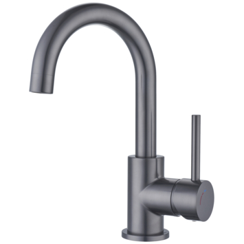 De Atlantic wastafelkraan Colin met hendel in gun metal is een praktische en stijlvolle toevoeging aan je badkamer. De kraan is 17,5 cm hoog en heeft een moderne gun metal afwerking die zorgt voor een luxe uitstraling. De uitloop is 360° draaibaar, zodat je hem makkelijk kunt draaien naar de plek waar je hem nodig hebt, bijvoorbeeld bij het wassen van je handen of het schoonmaken van de wastafel.