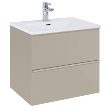 Het Atlantic badmeubel Aisa 60 cm taupe heeft twee ruime softclose-lades voor praktische opbergruimte. Elke lade is voorzien van een handgreep over de volledige lengte voor eenvoudig openen en sluiten. Het meubel is 60 cm breed, 46 cm diep en 63 cm hoog, iets hoger dan standaard, waardoor je extra opbergruimte krijgt.