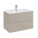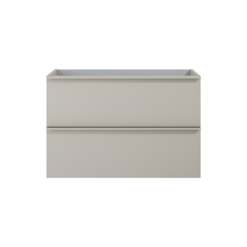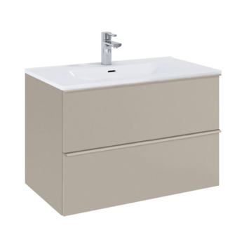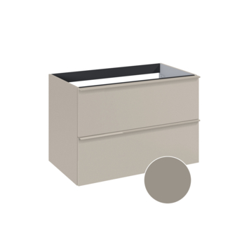 Het Aisa badmeubel van 80 cm in taupe biedt overzichtelijke opbergruimte met twee ruime softclose-lades. De handgrepen over de volledige lengte van de lades maken openen en sluiten soepel en comfortabel. Het hogere meubel zorgt voor extra opslagcapaciteit in elke lade, ideaal voor handdoeken, verzorgingsproducten en andere benodigdheden. De wastafel is niet inbegrepen, maar kan volledig zelf gekozen worden uit het Kyra- of Skappa-assortiment in zwart, wit of kasjmir. Zo stel je een set samen die perfect aansluit bij jouw wensen en badkamer. Met afmetingen van 80 cm breed, 46 cm diep en 63 cm hoog past het meubel in diverse badkamerformaten en blijft het functioneel en overzichtelijk.