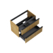 Het Atlantic badkamermeubel Orion 80 cm in geribbeld eik en zwart combineert modern design met praktische opbergruimte. De twee softclose-lades met voelbare ribbelstructuur geven extra grip en sluiten geruisloos, ideaal voor handdoeken en verzorgingsproducten. De lange zwarte handgrepen over de volledige breedte van de lades maken openen en sluiten soepel. Het meubel staat stabiel en vormt een solide basis voor een zelfgekozen wastafel uit de Kyra- of Skappa-lijn, beschikbaar in zwart, wit of kasjmir. Het contrast van eik en zwart geeft een moderne en opvallende uitstraling. Stel je eigen combinatie samen en geef je badkamer meteen een functionele upgrade.