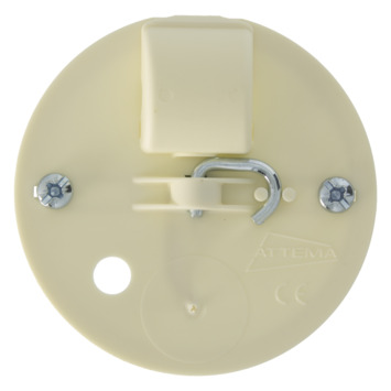 De Attema centraaldoosdeksel met haak, zonder insteekklem is te monteren aan de wand of het plafond met schroeven. De Attema centraaldoosdeksel heeft een diameter van 70mm, de kleur is wit en de deksel is gemaakt van kunststof.