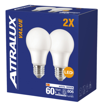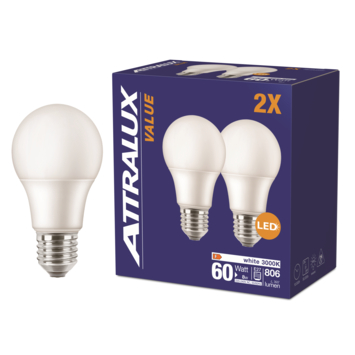 Attralux LED E27 60W 3000K frosted 2 stuks