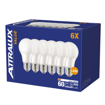 Attralux LED E27 60W 3000K frosted 6 stuks