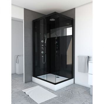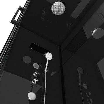 Deze strak ontworpen zwarte douchecabine van Aurlane is perfect wanneer je iets minder ruimte in de badkamer hebt. De cabine beschikt namelijk over een schuifdeur in de hoek. Daardoor heb je geen extra ruimte nodig om de deuren te kunnen openen. De wanden zijn gemaakt van 4 mm dik veiligheidsglas. Daar bovenop heeft de cabine een ingebouwde regendouche, een handdouche en 2 grote waterjets. De douchebak van deze Aurlane Douchecabine met Schuifdeur Black Mirror 2 Rechthoek Zwart 80x110 cm heeft een ondersteuningsframe met steunpoten. De hele set bestaat uit een centrale douchekolom, een douchebak, een voorzijde in zwart veiligheidsglas van 4 mm dik en een set achterwanden in zwart acryl. Deze cabine is ook beschikbaar in een vierkante en kwartronde uitvoering.