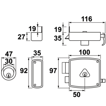 Tip: De doornmaat van dit oplegslot is 50 mm. De doornmaat kan opgemeten worden door te meten vanaf de voorkant van de voorplaat tot het midden van het cilindergat.