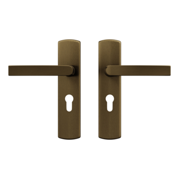 AXA Curve Klik Binnendeurset in een geslepen aluminium uitvoering in de kleur brons is geschikt voor binnendeuren van 38 tot 42 mm dik. De schilden en deurkrukken hebben een licht gebogen vorm en hebben geen zichtbare bevestigingspunten. Door de geslepen matte uitvoering zijn deze minder krasgevoelig en laten geen zichtbare vingerafdrukken achter. Deze deurkrukset is geschikt voor afsluitbare deuren met een cilinderslot van hart op hart 55mm. De deurkrukset wordt geleverd inclusief bevestigingsmaterialen.