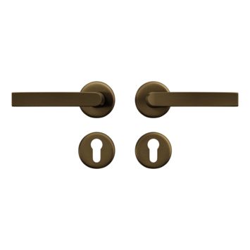 Binnendeurbeslag set Curve Klik met krukken Blok en cilinderrozetten in de kleur brons