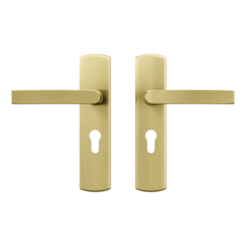AXA Curve Klik Binnendeurset in een geslepen aluminium uitvoering in de kleur goud is geschikt voor binnendeuren van 38 tot 42 mm dik. De schilden en deurkrukken hebben een licht gebogen vorm en hebben geen zichtbare bevestigingspunten. Door de geslepen matte uitvoering zijn deze minder krasgevoelig en laten geen zichtbare vingerafdrukken achter. Deze deurkrukset is geschikt voor afsluitbare deuren met een cilinderslot van hart op hart 55mm. De deurkrukset wordt geleverd inclusief bevestigingsmaterialen.