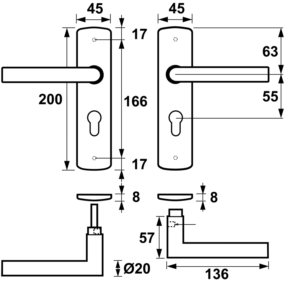- Standaard toepasbaar op deuren van 38 tot 42 mm dik