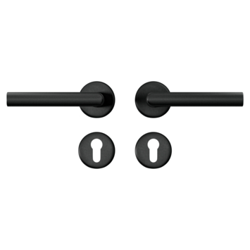 AXA Curve Klik Binnendeurset in een geslepen aluminium uitvoering in de kleur zwart is geschikt voor binnendeuren van 38 tot 42 mm dik. De deurkrukken hebben een haakse vorm en hebben geen zichtbare bevestigingspunten. Door de geslepen matte uitvoering zijn deze minder krasgevoelig en laten geen zichtbare vingerafdrukken achter. Deze deurkrukset is geschikt voor afsluitbare deuren met een cilinderslot. De deurkrukset wordt geleverd inclusief bevestigingsmaterialen en rozetten.