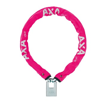 Het roze Clinch kettingslot is een kwalitatief hoogwaardige ketting die vooral geschikt is voor het beveiligen van uw fiets op minder diefstalgevoelige plaatsen of als tweede slot. De schakels van het slot zijn gemaakt van gehard staal en zijn 6mm dik. Dit betekent dat ze moeilijk door te knippen zijn. Het Clinch kettingslot heeft een los hangslot, waardoor het praktisch in gebruik is. Verder heeft de ketting een sterke polyester beschermhoes die voorkomt dat het frame van uw fiets beschadigt. Het kettingslot is 85cm lang.