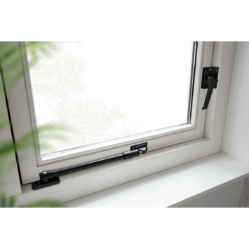 De zwarte AXA raamsluiting met drukknop, linkse uitvoering, is een solide en handige raamsluiting. De zwarte raamboom is voorzien van een drukknop wat zorgt voor extra inbraakwerendheid. Met de nok van de raamboom kunt u de raamboom op ventilatiestand zetten. Dit zorgt ervoor dat frisse lucht naar binnen kan en de ruimte optimaal wordt geventileerd. U monteert de solide raamsluiting eenvoudig op raam- en deurkozijnen. De zwarte raamboom kan op een donkerkleurig kozijn onopvallend worden gemonteerd terwijl deze op bijvoorbeeld een wit kozijn juist prachtig kan staan door de contrasterende kleur. Met deze raamboom van AXA sluit en opent u ramen en deuren met groot gemak, of u zet ze op kiepstand.