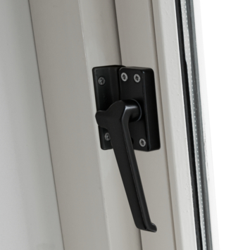 De zwarte AXA raamsluiting met nok, rechtse uitvoering, is een solide en handige raamsluiting. De zwarte raamboom is voorzien van een nok waarmee u de raamboom op ventilatiestand kunt zetten. Dit zorgt ervoor dat frisse lucht naar binnen kan en de ruimte optimaal wordt geventileerd. U monteert de solide raamsluiting eenvoudig op raam- en deurkozijnen. De zwarte raamboom kan op een donkerkleurig kozijn onopvallend worden gemonteerd terwijl deze op bijvoorbeeld een wit kozijn juist prachtig kan staan door de contrasterende kleur. Met deze raamboom van AXA sluit en opent u ramen en deuren met groot gemak, of u zet ze op kiepstand.