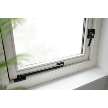 De aluminium veiligheids raamsluiting van AXA in de linkse uitvoering, is een solide en handige maar bovenal veilige raamsluiting. De alu raamboom is voorzien van een slot wat zorgt voor optimale inbraakwerendheid. Niet voor niets heeft deze raamsluiting SKG 1-ster. Tevens kun je met de nok de raamboom op de ventilatiestand zetten. Dit zorgt ervoor dat frisse lucht naar binnen kan en de ruimte optimaal wordt geventileerd. U monteert de solide raamsluiting eenvoudig op raam- en deurkozijnen. De zwarte raamboom is universeel toe te passen op allerlei soorten kleuren schilderwerk. Met deze raamboom van AXA sluit en opent u ramen en deuren met groot gemak, of u zet ze op kiepstand.