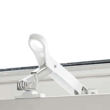 De Axa raamuitzetter combi RVS buitendraaiend wit is geschikt voor naar buiten draaiende klepramen met een minimale raamhoogte van 16,5 cm. De raamuitzetter is gemaakt van wit gelakt RVS. Hiermee kun je het raam niet alleen afsluiten maar kun je het raam ook op iedere gewenste (ventilatie)stand zetten. Door de meegeleverde montagehandleiding is ook het monteren erg gemakkelijk.