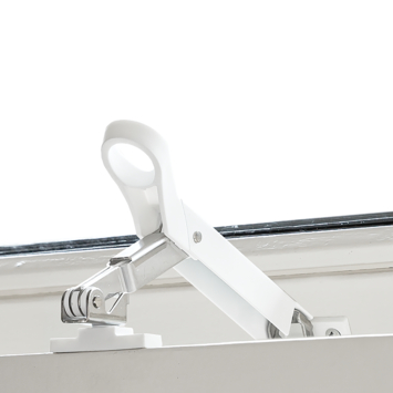 De witte AXA-raamuitzetter van 20mm is een rvs-raamuitzetter en raamsluiter ineen. Met de raamuitzetter opent en sluit u ramen op een veilige manier. Wanneer u een klepraam opent en deze vastzet met de rvs-raamuitzetter ventileert u uw woning, zonder dat het raam klappert door de wind. Daarnaast voorkomt u met de 20mm lange raamuitzetter dat kinderen door het openstaande raam naar buiten klimmen of dat er inbrekers door het raam naar binnen komen. De maximale ventilatieopening die u met de raamuitzetter realiseert is namelijk 160mm, oftewel 16cm. Dat is klein genoeg om inbraakwerend te zijn en groot genoeg voor voldoende ventilatie. U kunt de wit gelakte rvs-raamuitzetter instellen op 3 preferente standen. De AXA-raamuitzetter past met zijn witte kleur mooi bij witte raamkozijnen. De raamuitzetter is bovendien wegdraaibaar. Nadat u de witte rvs-raamuitzetter sluit, draait u deze eenvoudig evenwijdig aan het raamkozijn zodat er geen delen uitsteken.