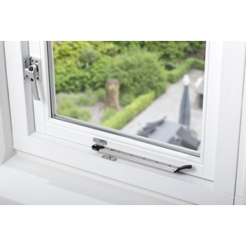 Het zwarte AXA-uitzetijzer Habilis van roestvaststaal is geschikt voor het openen van draairamen. Door een draairaam open te zetten op een bepaalde stand met behulp van het Habilis-uitzetijzer zorgt u voor optimale ventilatie. Het uitzetijzer heeft 5 ventilatiestanden, zodat u zelf de gewenste opening van het raam instelt. Bovendien is het rvs-uitzetijzer windzeker; de uitzetter glijdt bij wind niet van de pen af. Roest heeft geen kans op dit corrosiebestendige uitzetijzer. Heeft u zwarte raamkozijnen? Dan past dit zwart gelakte rvs-uitzetijzer Habilis van AXA daar mooi bij.